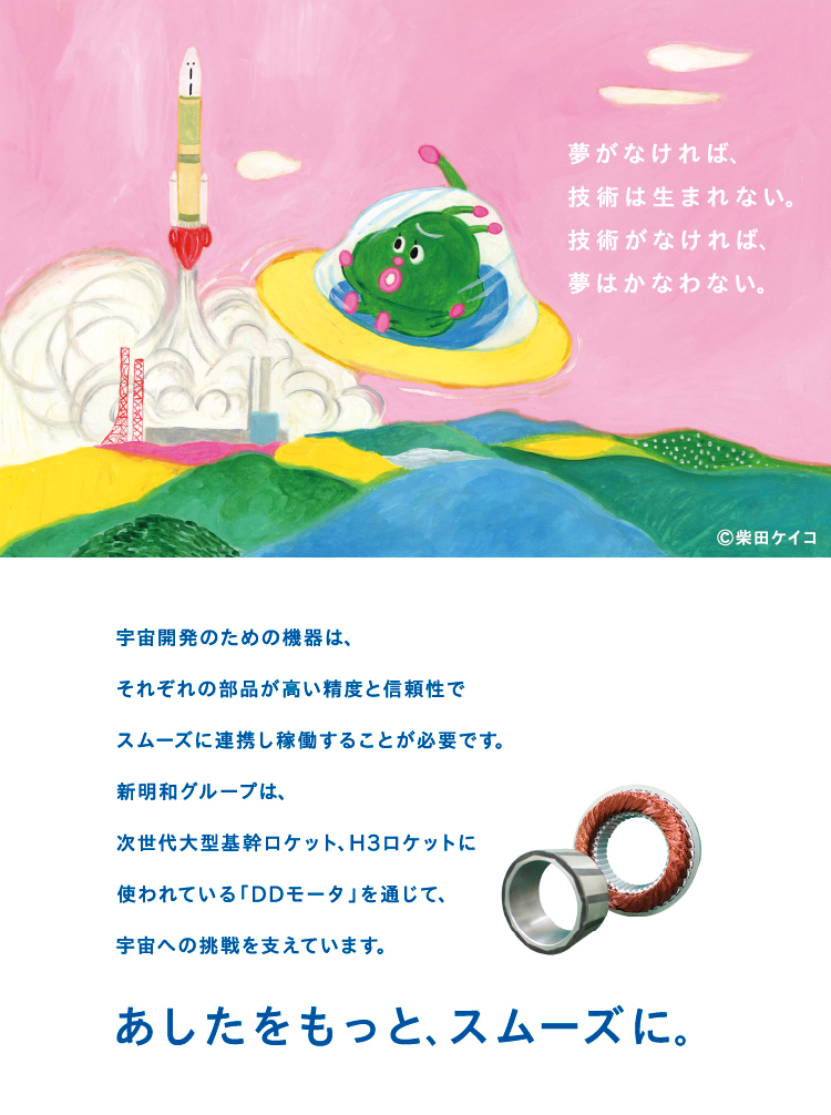 日常の中で、人々の暮らしを支える製品・サービスを多く手掛ける新明和グループ。そんな存在に気づき、提供している価値をより多くの方に知っていただこうと、宇宙から地球という星へ社会見学にやって来た宇宙人『メイメイちゃん』をアンバサダーキャラクターに迎え、メイメイちゃんの目線から、驚くほど円滑(スムーズ)な日常を支えている新明和グループの技術力、存在感をチャーミングなトーンで語っていきます。