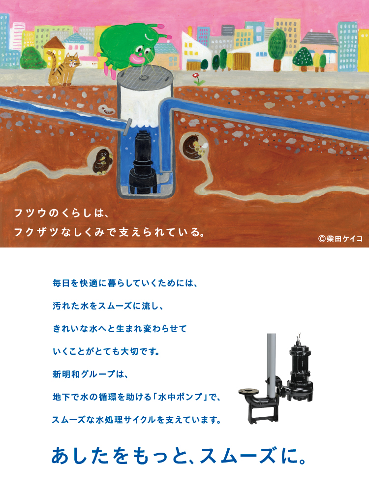 この愛らしい「メイメイちゃん」と温かみのあるイラストを通じて、新明和グループを身近に感じていただけましたら幸いです。