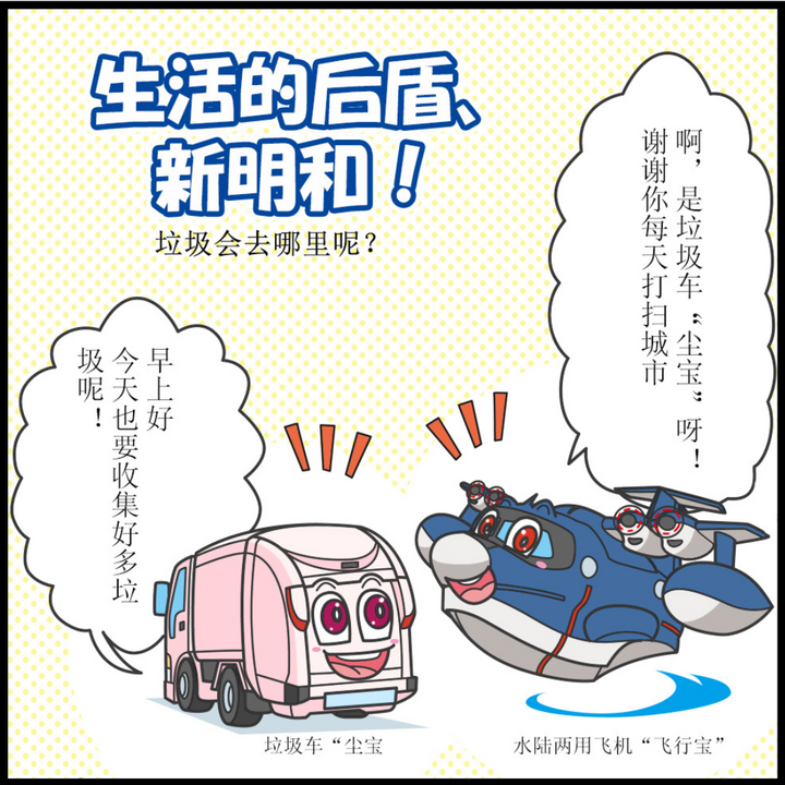 本期,来自水陆两用飞的 飞行宝 和来自垃圾车的 尘宝 介绍了我们的产品,这些产品在处理垃圾方面发挥了积极作用,对保护我们的舒适生活至关重要。