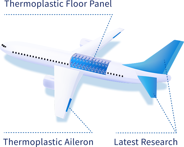 With a view to achieving aircraft production rates of approximately 80 aircraft per month in the 2030s, the development of even more efficient molding technologies has begun. Through significant improvements in productivity, the application of thermoplastic CFRP components is expected to be expanded.