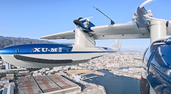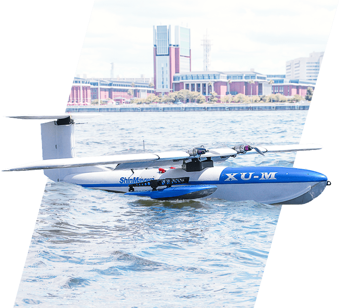 Applying hull design technologies cultivated in the development of the US-2, this aircraft was created to support research into automatic water-landing control. Test flights were conducted in Osaka Bay, successfully generating the data required for automatic landing. In 2022, a demonstration flight was carried out at the inaugural Drone Summit held on Port Island.