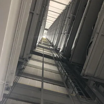 A space-saving, high-capacity system capable of accommodating heights up to 100 m. With features such as low vibration and a steel-frame structure that follows building sway, this system was specially designed for high-rise condominiums and has become the mainstream parking format in today's high-rise residences.