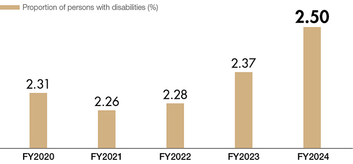 The Group is committed to establishing an inclusive society, where anyone who wants to work and has the ability to do so can take part in society through their work, regardless of disabilities, and is therefore promoting the hiring of people with disabilities.