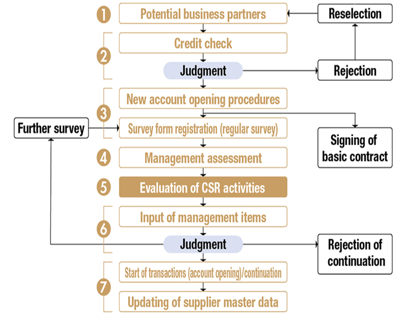 7. Promote CSR procurement evaluation of business partners (understanding and further improvement of initiatives) and appropriate procedures for business partner selection