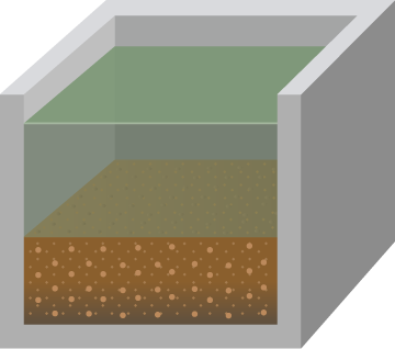 排水は最初にこの沈砂池に運ばれ、スクリーンで大きな異物が取り除かれます。