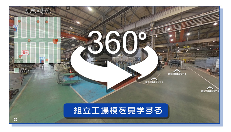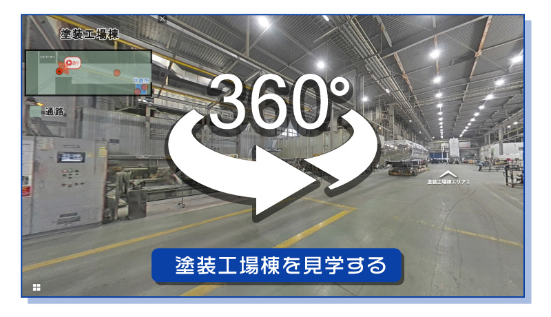 東邦車輛の工場内を、スマートフォンやパソコンから360°見ることができるVR(バーチャルリアリティ)工場見学コンテンツです。